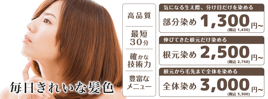 これまでの白髪染めに抵抗感のある方も、白髪染め未経験の方も、試してみる価値大のメニューです。