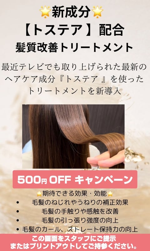 テレビでも取り上げられた最新のヘアケア成分「トステア」を使ったトリートメント